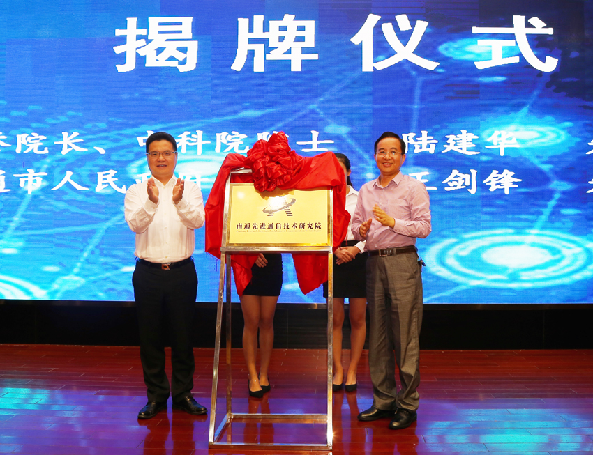 中国科学院院士、清华大学电子工程系教授陆建华,南通市委常委、副市长王剑锋共同为南通先进通信技术研究院揭牌。