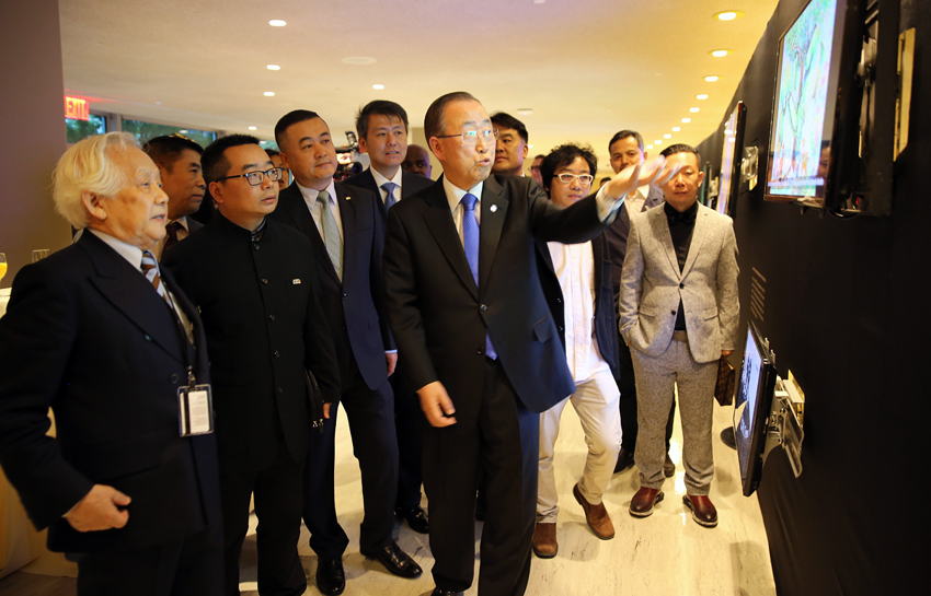 9月29日,我校艺术学院教师、国家一级美术师张卫等国内6位画家作为“森林中国”组委会代表应邀出席联合国总部“拯救地球”绿色团展览会(UN Head quarters “Save the Earth” Green Corps Exhibition)开幕式,张卫代表中国艺术家向联合国捐赠画作,并参加生态保护主题公益作品展及沙漠化专家研讨会等活动。联合国秘书长潘基文出席活动,并兴致盎然欣赏了画作。