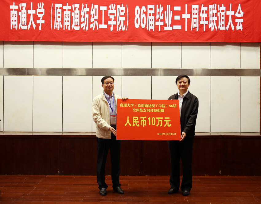 阵阵丹桂香,浓浓母校情。10月15日,180余名原南通纺织工学院86届毕业生满怀阔别三十周年的思念,满载着五湖四海的芬芳,重返母校,感谢师恩,共叙同窗深情。校长程纯出席活动讲话,并代表学校接受校友们的捐赠。