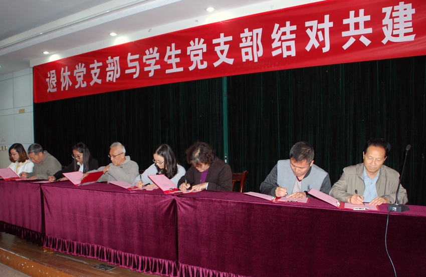 离退休党工委退休党支部与六个学院的七个学生党支部开展结对签约。