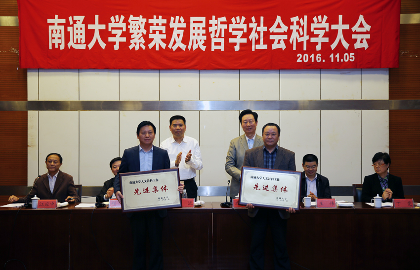 校党委副书记、副校长江应中主持会议,并宣读了《南通大学关于表彰人文社科工作先进集体、先进个人的决定》。与会领导为获奖代表颁奖。管理学院臧乃康教授、文学院千金梅副教授作为获奖代表做交流发言。