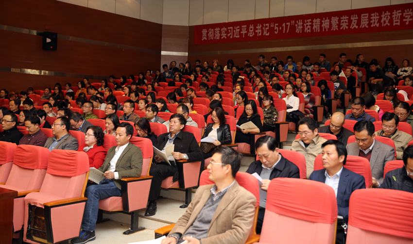 11月5日下午,我校召开繁荣发展哲学社会科学大会。教育部社科司司长张东刚应邀作解读习近平总书记“5·17”讲话精神的辅导报告。省教育厅副厅长洪流、校党委书记成长春、校长程纯出席会议并讲话。