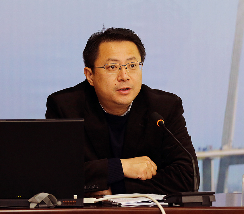陈明作了题为《长江经济带背景下协调性均衡建设江苏综合交通网》的报告。他介绍了长江经济带综合交通网络建设的现状及江苏综合交通建设的现状与态势。针对江苏总格立体交通枢纽建设存在的问题,他提出要打造江苏综合立体交通新枢纽,即做好交通运输规划编制和政策的调研;全面推进交通运输深化;改革加快推进综合交通网络建设。