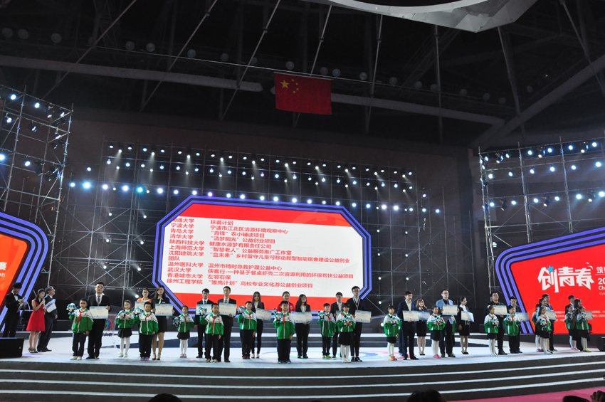 金奖获得者“扶苗计划”项目团队代表(右二)闭幕式颁奖仪式上展示。