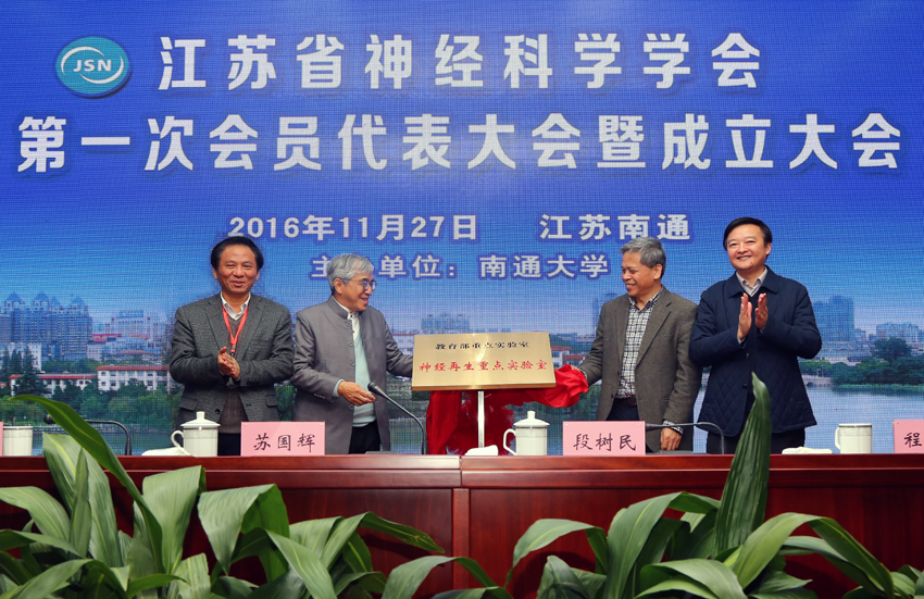 会上,段树民、苏国辉、顾晓松、程纯共同为教育部神经再生重点实验室揭牌。