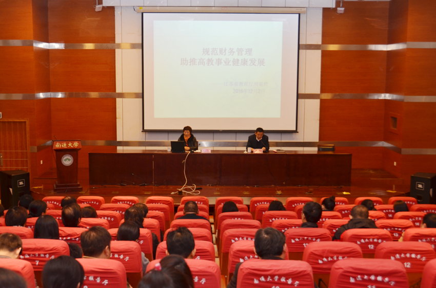 12月2日下午,我校举办财务管理专题讲座,江苏省教育厅财务处处长周亚君应邀来校作题为《规范财务管理,助推高教事业健康发展》的专题讲座。姜佩剑总会计师主持讲座。