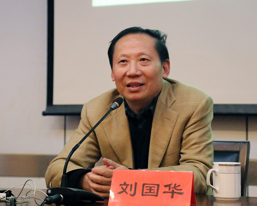 上海市甘泉外国语中学校长、上海校友会副秘书长刘国华做专题报告。(校报学生记者 朱袁琪/摄)