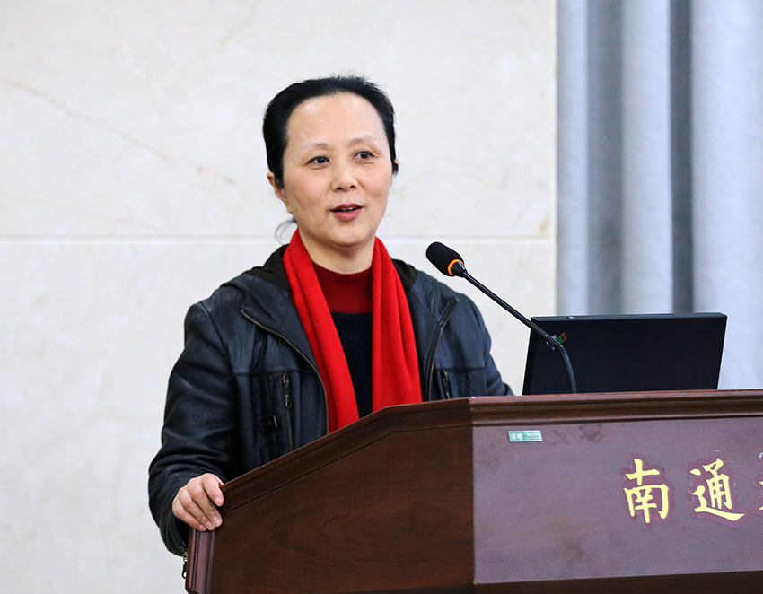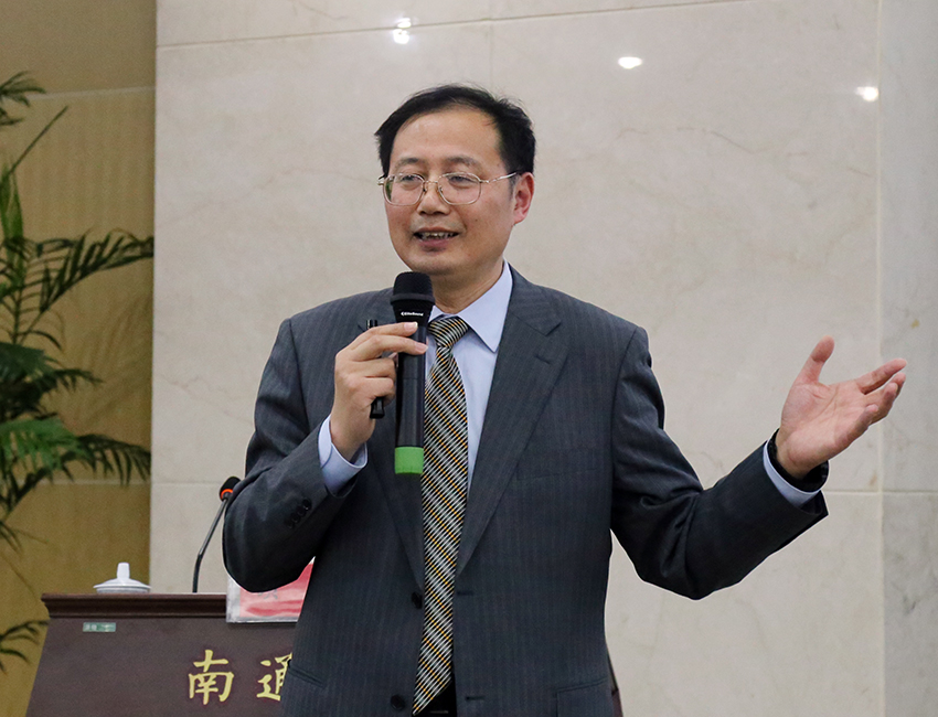 上海交通大学党委常委、组织部长、南通大学校友会常委理事、上海校友会副会长顾锋教授做专题报告。(校报学生记者 孙路/摄)