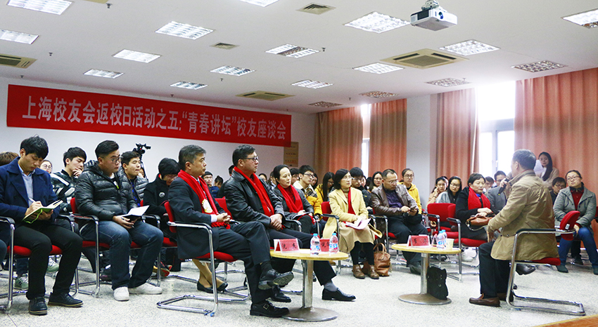 上海校友回校给学子“传经送宝”。