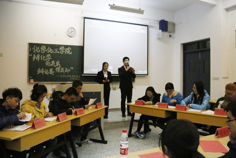 开幕式后,作为文化节首场活动,化学化工学院举办“辩化学,论其实,得其知”辩论赛。此场辩论赛主题为“化学对人类发展利大于弊,还是弊大于利”,辩论双方灵活的思维和缜密的逻辑推理,不时地赢得场下阵阵掌声。