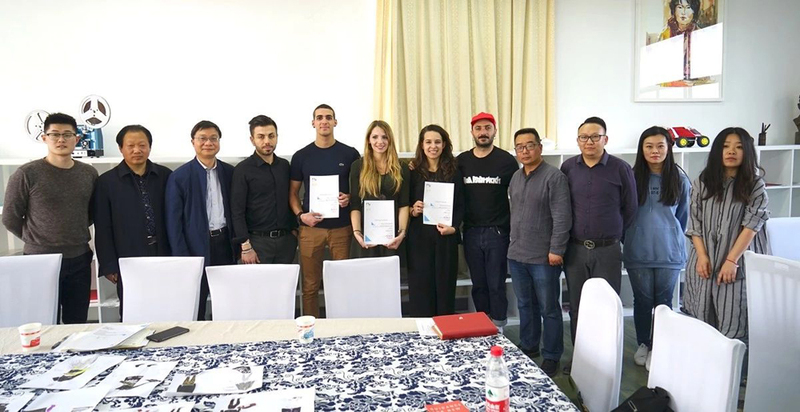 访问期间,意大利卢索服装学院时装设计学院教授Salvatore Davide走进艺术学院课堂,以“视觉搭配艺术”为主题,通过workshop的形式指导同学们完成了服装搭配的课堂教学。同时,来自意大利卢索服装学院时装设计学院的3名学子Fabrizia Candido、Alessandro Maturo和Arianna Casnati,分别走进了艺术学院宋漾、刘天骄两位老师的课堂,与视觉传达专业的学生们一起创作了生动有趣的象形文字。通过小组合作的方式,中意学生共同完成了一组5个象形文字的创作,并创造性地将创作成果运用于明星片、脸谱等道具中,形成了兼具创意理念与文化内涵的设计作品。在小组合作、交流、碰撞的过程中,中意学子们建立了深厚的文字情结,结下了浓厚的国际友谊。意大利卢索服装学院时装设计学院师生一行还参观了艺术学院的爱艺笙文创中心、美术馆、动漫艺术研究中心等教学实践场地。