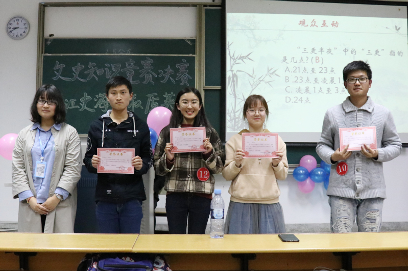 4月13日晚,文学院举办“文江史海·淑质英才”文史知识竞赛,经过激烈的角逐,共评出一等奖1人,二等奖2人,三等奖4人,优秀奖11人。