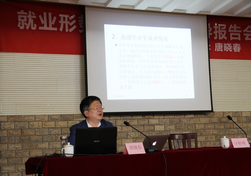 南通市人才服务中心党委书记唐晓春做讲座。