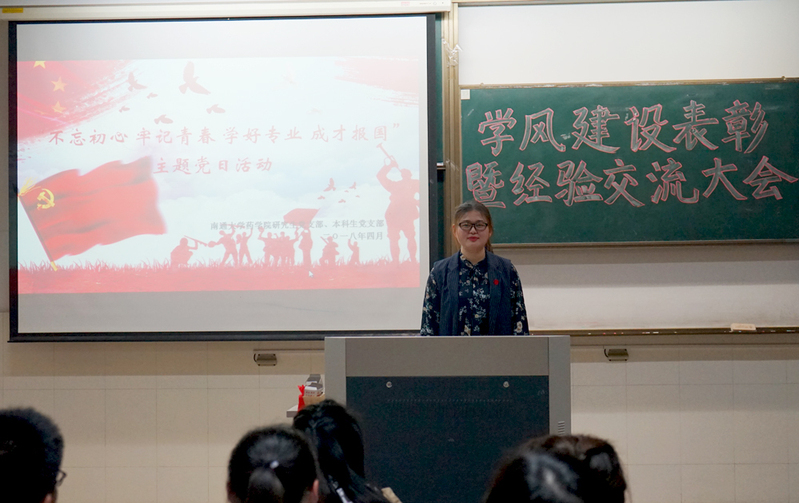 4月19日晚,药学院举行“不忘初心、牢记使命,学好专业,成才报国”系列主题党日活动之“学风建设表彰暨经验交流大会”,对药学院2017年学风建设先进个人和先进集体进行了表彰。与会领导为获奖者颁奖。