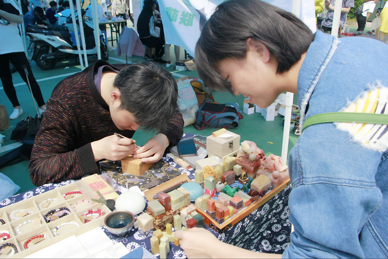 本届淘宝街共有来自商学院、文学院、理学院等15个学院的近百支创新创业团队报名,申报类型涵盖学生创业平台、手工艺制品、互联网产品及校园文化产品等多个方向。经过后期的层层筛选审核,56支团队最终入选,其中创新类摊位占总数的30%,创淘宝街历史新高。淘宝街现场,产品丰富多样,有种类繁多的自制小吃、手工自设自制的配饰以及极具价值的通大纪念品,众多团队都采取了“线上”+“线下”的营销方式,利用前期线上活动积累的人气,在现场迅速扩大知名度,顾客络绎不绝。