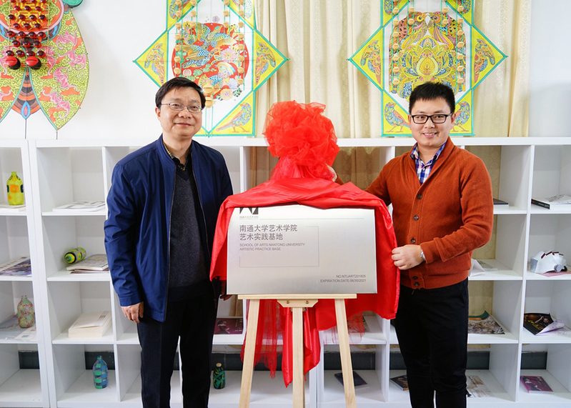 艺术学院党总支书记汪松明与南通新宇雅正音乐文化传播有限公司总经理赵林抄为实践基地揭牌。