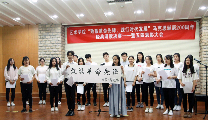 艺术学院举办“致敬革命先锋,践行时代发展”马克思诞辰200周年经典诵读决赛暨五四表彰大会。