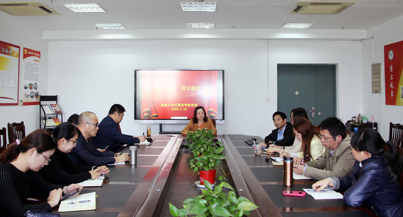 5月10日下午,外国语学院党委举行了“学法知纪·净心崇廉”专题党课学习。院党委书记施皓作题为 “坚守纪律底线 树立清风正气”的专题党课。
