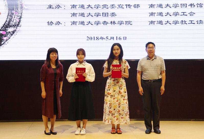 5月16日,我校第十三届文化读书月系列活动之“经典诗词咏唱”在启东校区举行。经过紧张激烈的角逐,《我骄傲,我是中国人》《那一世,我终于明白》获学生组一等奖,《长河吟》《蒹葭》等4组作品获得二等奖,《将进酒》《可爱的中国》等6组作品获得三等奖。