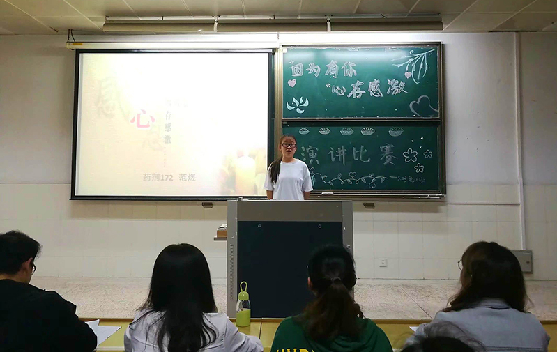 为迎接首个校庆日,5月23日晚,药学院举办“因为有你,心存感恩”演讲比赛。同学们各展风采,诉说自己对感恩的认识和理解。