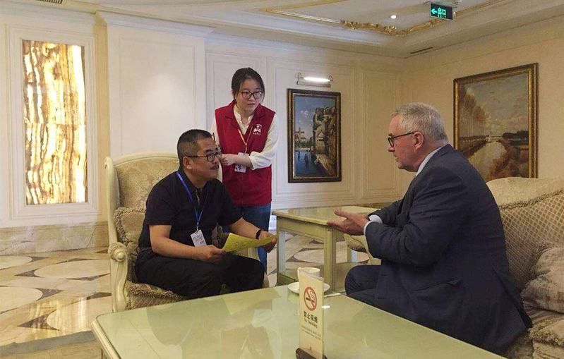 外国语学院“百灵鸽”双语志愿者活跃在会议现场。
