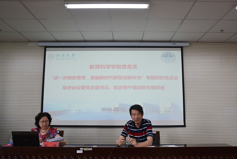 教育科学学院党总支书记陈炜带领大家学习了中共中央《关于进一步激励广大干部新时代新担当新作为的意见》以及江苏省委下发的《江苏省党政干部鼓励激励办法》《江苏省进一步健全容错纠错机制的办法》《江苏省推进党政领导干部能上能下办法》等文件精神,并对各个支部专题组织生活会的召开进行了部署。