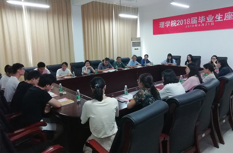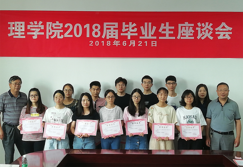 6月21日下午,理学院在16号楼512会议室召开2018届毕业生代表座谈会。理学院党政领导、全体辅导员、毕业班班主任代表、优秀毕业学生代表参加座谈会。与会领导为优秀毕业生颁发获奖证书及纪念品。