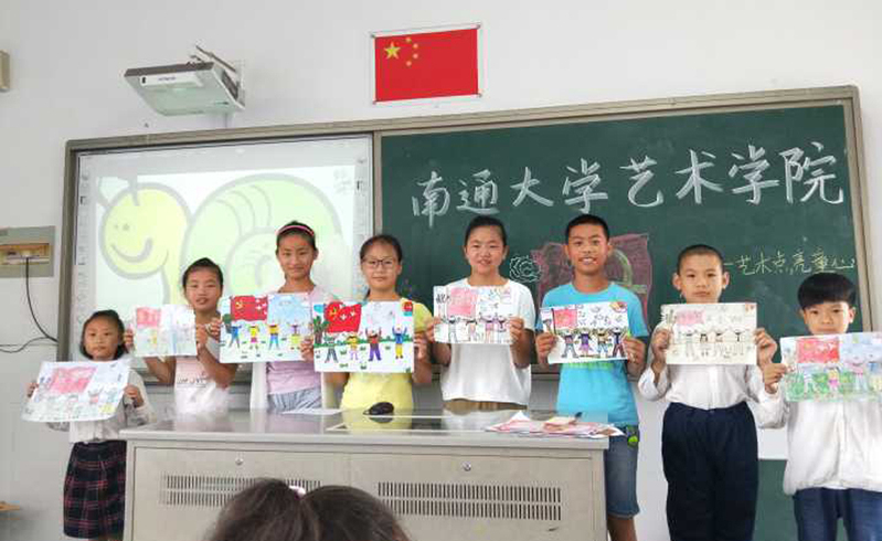 近日,我校37名大学生志愿者走进海门市正余乡村少年宫和海门余东乡村少年宫,与乡村学校的200多名学生开展了夏日里的艺术之旅。