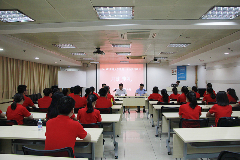 7月9日下午,商学院举行“2018年南通大学暑期大学生实习项目”开班仪式,共有28名学生将参加中国银行南通分行暑期见习实践活动。