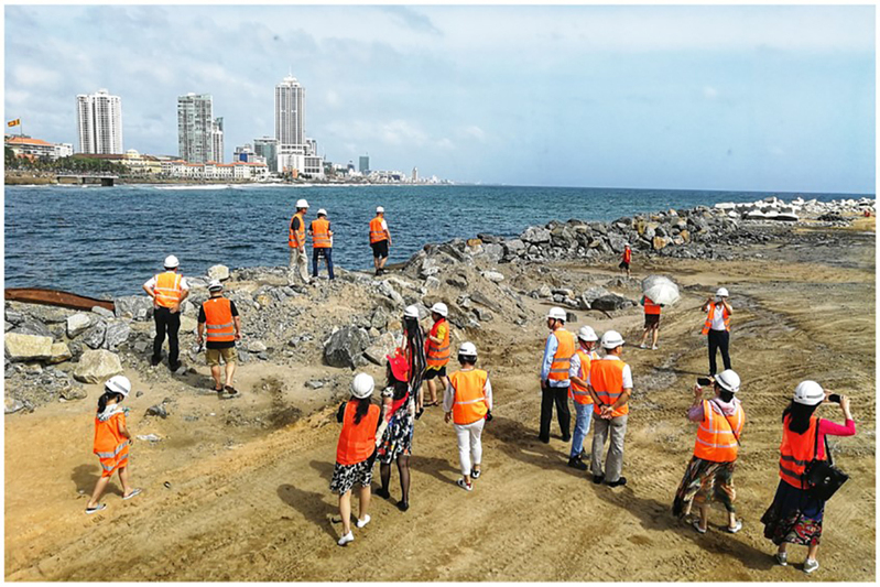 小分队全体人员还前往正在建设中的科隆坡填海造城项目——港口城基础工程的施工现场,慰问“一带一路”的建设者们。会议室内,施工指挥向小分队介绍了工程概况和施工方案,播放了港口城远景展示视频和工程技术动画片。此项目由中交建投资14亿美金,中国港湾施工,占地269万平方米,后续还会引来130亿美金的造城建设,将创造八千多人的就业机会,成为一座集金融、旅游、住宅、医疗和教育于一体的世界级中心。针对工地特点,小分队中的医学专家分别作了五场讲座。上海打捞局张辉主任医师讲授工地溺水及电击救护知识;小儿科陈建萍主任医师讲授腹泻的防治;中山医院沈洪副教授讲授猝死防治知识;同济医院徐蔚博士讲授眼疾防治知识;国家二级心理咨询师顾亚琴讲授心理健康知识。妇科专家邱伟民、牙科专家曹同飞等全体医务工作者为建设者们提供了医学咨询。