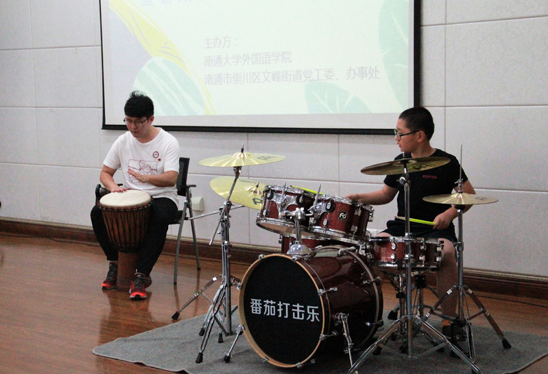 颁发仪式结束后,大学生志愿者与社区青少年儿童为社区群众带来了精彩纷呈的文艺汇演。演出中,文峰街道的小朋友和通大外院志愿者们默契配合,带来现代舞、歌曲、架子鼓、杯子舞、中英日三语朗诵等精彩纷呈的节目。演出在大合唱表演《没有什么不同》的歌声中中圆满结束。
