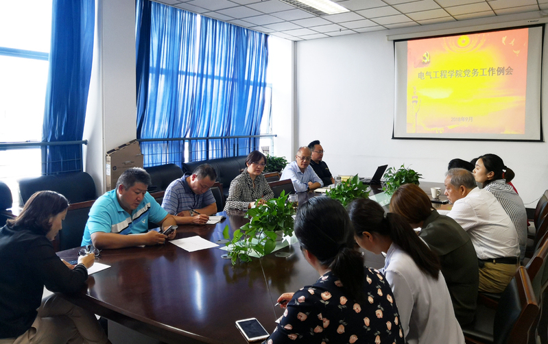 9月26日下午,电气工程学院党总支召开党务工作会议,传达学校党务工作会议精神,布置新学期党务工作。学院党总支成员、各党支部书记出席会议。会议由党总支书记刘芸主持。
