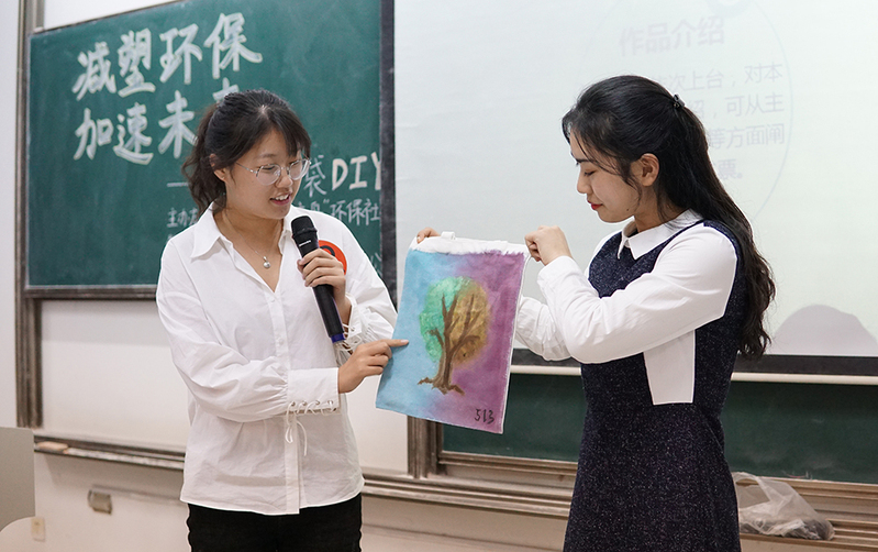 “绿色方舟”环保社团举办校园DIY环保帆布袋活动。