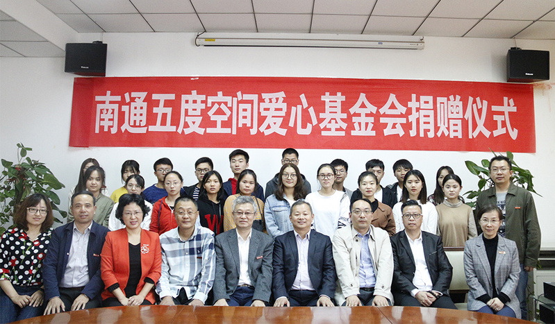 南通五度空间爱心基金会向学校捐助6.5万元,确定资助22名贫困生直至本科毕业,帮助他们励志发展、拼搏成才。