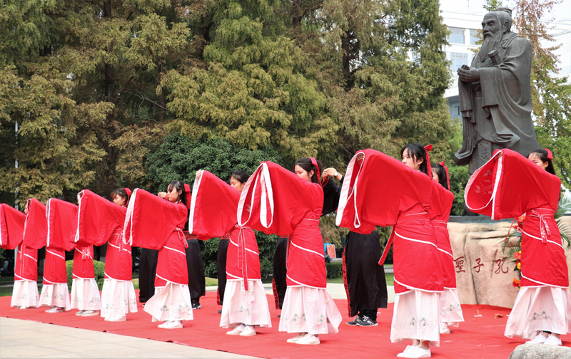 10月17日下午,教科院在钟秀校区孔子园举行第二届师范生祭孔仪式。学院党总支书记陈炜、党总支副书记副院长徐红波、部分教师代表、教科院2018级200余名师范生出席仪式。