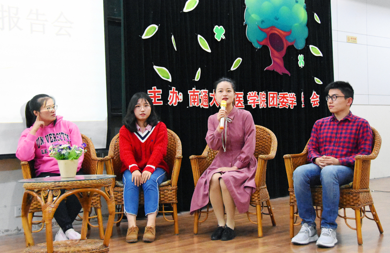 报告会还特别邀请了2018年度全国十大优秀住院医师、南通大学附属医院冯桂娟老师。她从体格、品德、专业素养、交往能力、思维创新等五个方面指出当今社会需要的“复合型人才”,鼓励新生均衡人生发展,实现华丽转变。报告会还以嘉宾访谈的形式,就同学们感兴趣的专业学习、学生干部工作、校园文化活动等话题一一作了交流和分享。