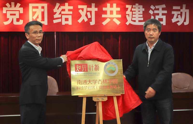 10月26日下午,杏林学院与建设银行启东支行举行党团结对共建活动。启东支行行长王新、杏林学院党委书记陆伟家共同签订了党支部、团支部共建协议,并为就业创业基地、党员服务站揭牌。