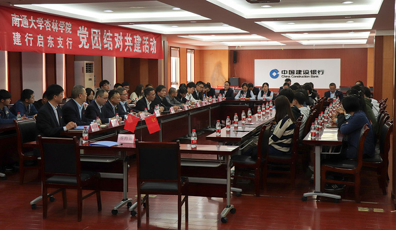 杏林学院与建设银行启东支行开展党团结对共建活动。