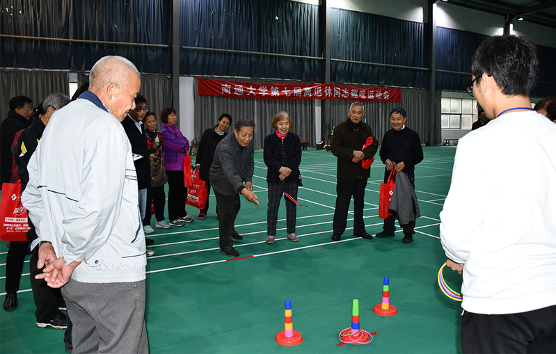 11月7日下午,第七届离退休同志趣味运动会在启秀校区羽毛球馆举行,近180位离退休同志兴致勃勃地参加了比赛。