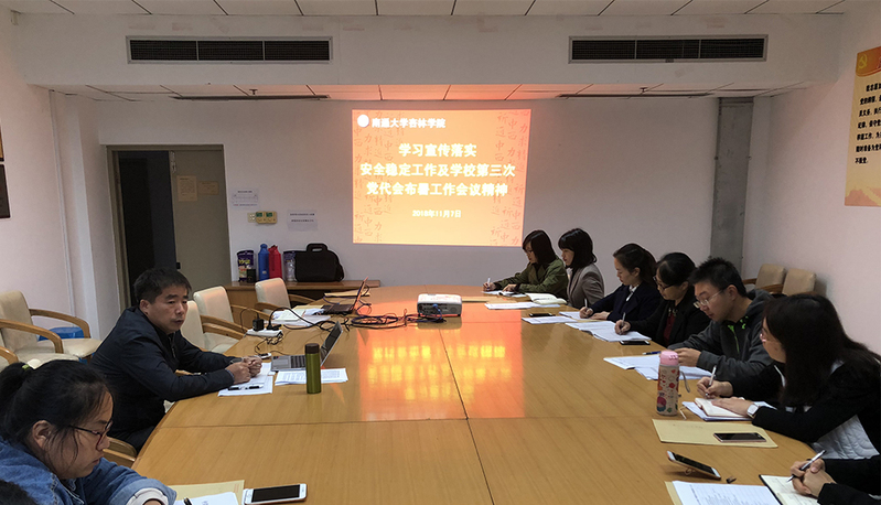 11月7日上午,杏林学院在钟秀校区召开党支部书记(扩大)会议,专题学习校宣传落实安全稳定工作及学校第三次党代会部署工作会议精神。学院党委书记陆伟家、全体党支部书记和部门负责人参会。