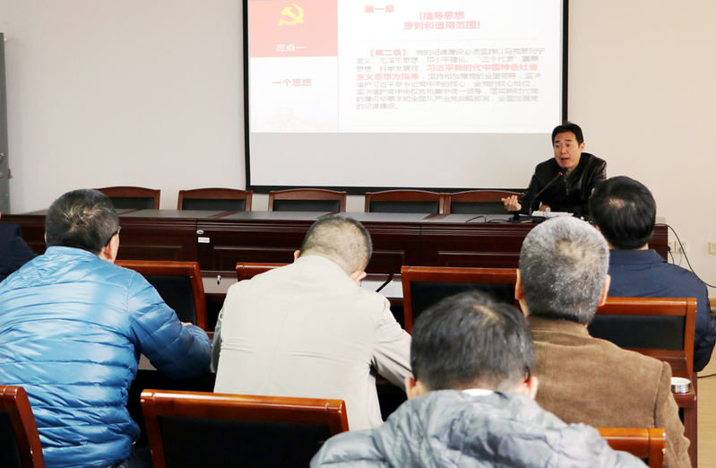学院党总支书记吉明明主持会议,并从基础知识、学习要求、修订亮点和修订内容四个方面解读了新版《条例》。吉明明指出,《条例》坚持依规治党与以德治党相结合,划出了党组织和党员不可触碰的底线,对于贯彻全面从严治党要求和切实维护党章和其他党内法规的权威性、严肃性,保证党的路线、方针、政策、决议和国家法律法规的贯彻执行以及对深入推进党风廉政建设和反腐败斗争具有十分重要的意义。