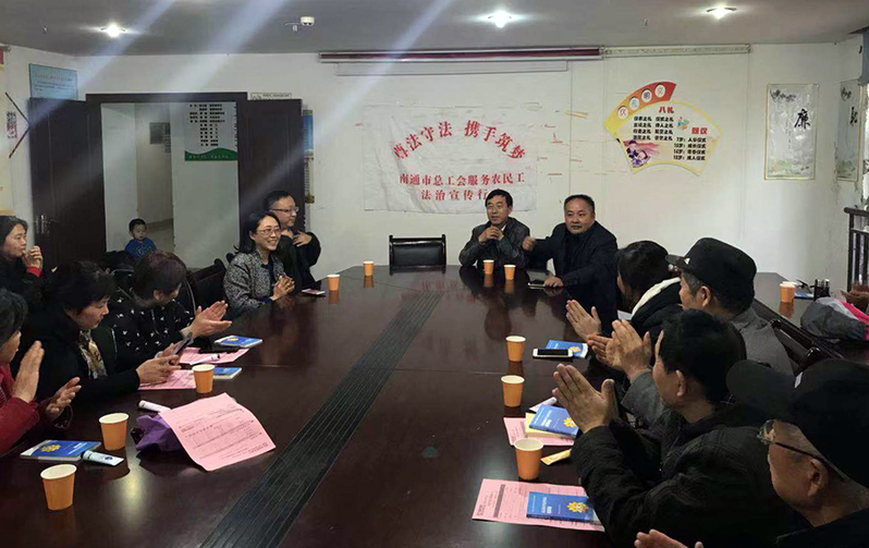 近日,由我校工会副主席陈晓春,管理学院韩裕庆、曹海俊、章亚梅等老师组成南通大学“尊法守法,携手筑梦”农民工法治宣传小分队,分别深入港闸区经十三路工程项目部、中创区A大道工程项目部、中兴街道民主港社区、东篱社区为80余名农民工送去法制宣传服务。