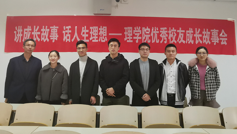 11月24日下午,理学院举办“讲成长故事,话人生理想”优秀校友成长故事报告会,理学院数学师范专业张锦、刘笑天,物理师范专业曹凯强,光电信息科学与工程专业陆帅华,应用统计专业石磊珂等五位校友从不同视角讲述他们的成长故事,与学弟学妹分享人生感悟。理学院师生代表290多人聆听报告会。