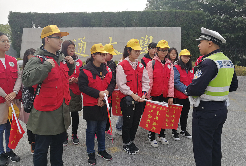 为纪念全国交通安全日,配合南通文明城市检查,践行文明、法治、友善的社会主义核心价值观,11月26-27日,我校莫文隋青年志愿者协会化学化工学院分会在园林路南通大学西门、崇川路、桃园路口开展“交通协警”志愿活动。共43名志愿者报名参加了本次交通协警实践活动。