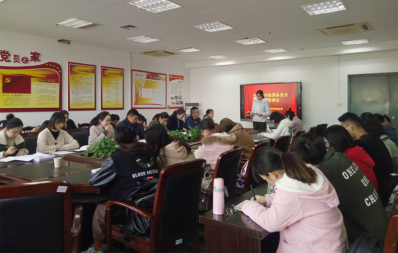 11月28日下午,外国语学院举行预备党员转正答辩会。外国语学院党委副书记、副院长陈俊怀,学生党支部书记顾亚梅、王媛媛、施旋担任答辩会评委。全体预备党员及部分入党积极分子参加会议。