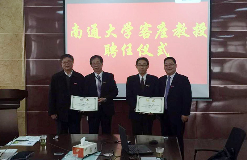 11月30日,纺织服装学院举行客座教授聘任仪式,聘任日本信州大学纤维学部博士生导师森川英明和鲍力民教授为客座教授。人事处处长姜朝晖、纺织服装学院安防中心主任高强教授为森川英明和鲍力民教授颁发聘书并佩戴校徽。