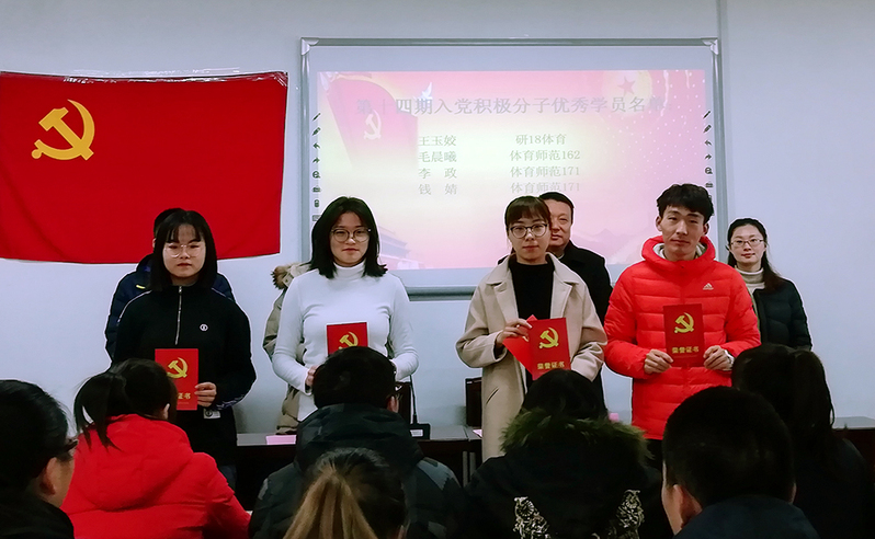 1月3日,体育科学学院举行入党积极分子培训班结业典礼暨2018年新党员宣誓仪式,为党训班学员颁发结业证书,为优秀学员颁发荣誉证书。