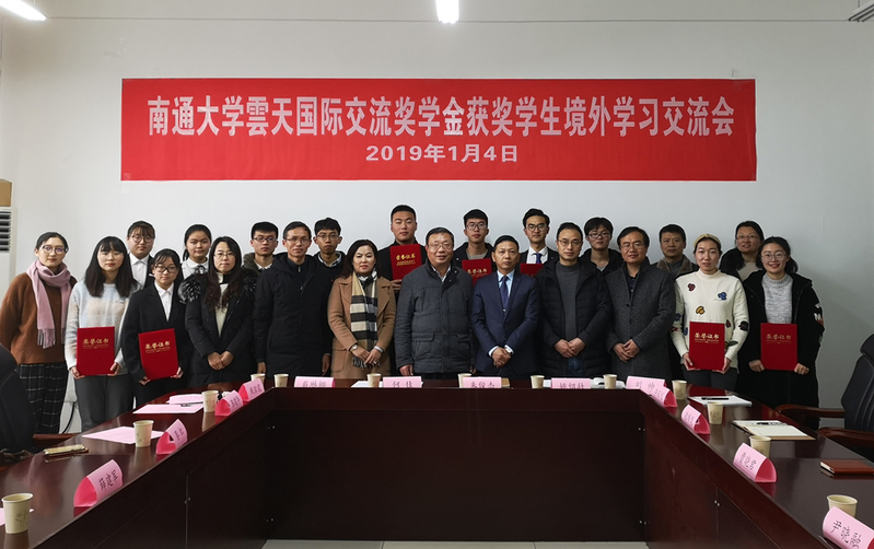 1月4日下午,理学院举行雲天国际交流奖学金首批获奖学生境外学习交流会。会上表彰了2018年雲天国际交流奖学金获得者,雲天国际交流奖学金设立者、江苏芸裕金属制品有限公司董事长薛建军、总经理蔡红为获奖学生颁发获奖证书。