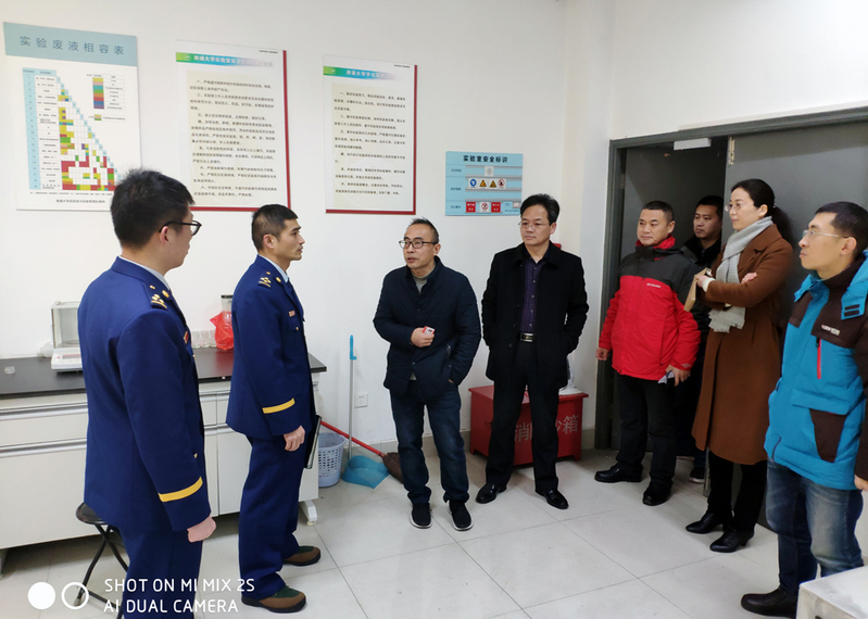 消防支队副队长韩征一行抽查了我校重点要害部位(超市、食堂、危化品实验室)的消防安全,对我校“智慧消防”系统改造初步方案进行了技术上的指导,并对我校危化品管理、实验设备、实验室安全和抽查中发现的安全隐患提出了整改建议,为我校“智慧消防”系统的前期改造奠定了基础。