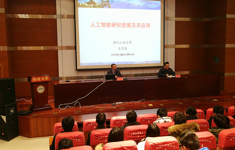 1月22日,国家级教学名师、浙江工业大学王万良教授,国家级创业领军人才、上海帝联信息科技股份有限公司董事长兼总经理康凯先生应邀来校,分别做了题为《人工智能研究进展及其应用》和《你的未来不是梦》的报告。